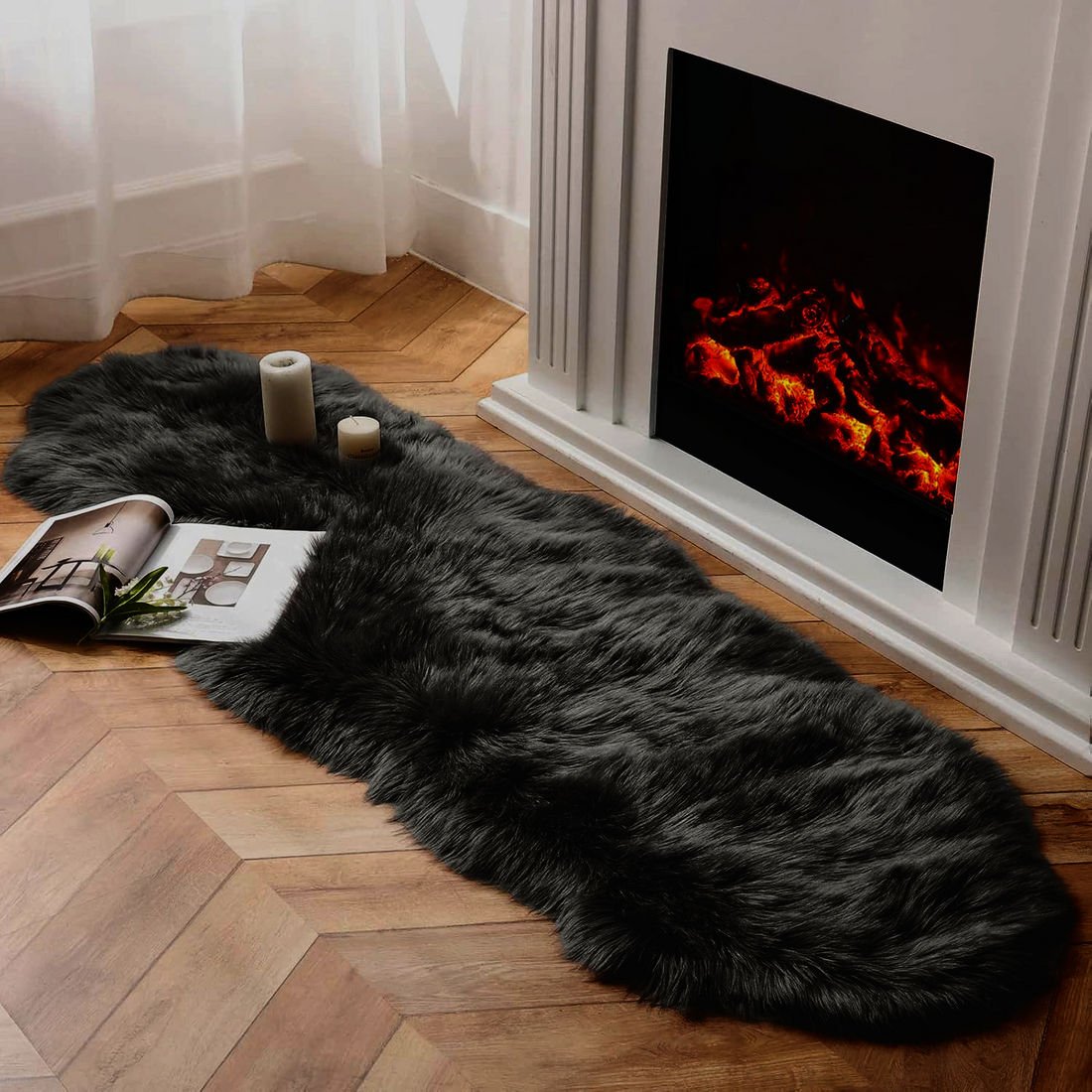Black Furry Rug 150x60cm