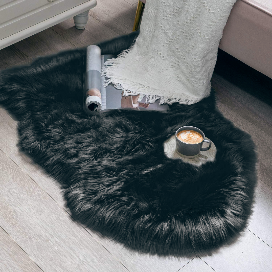 Black Furry Rug 90x60cm